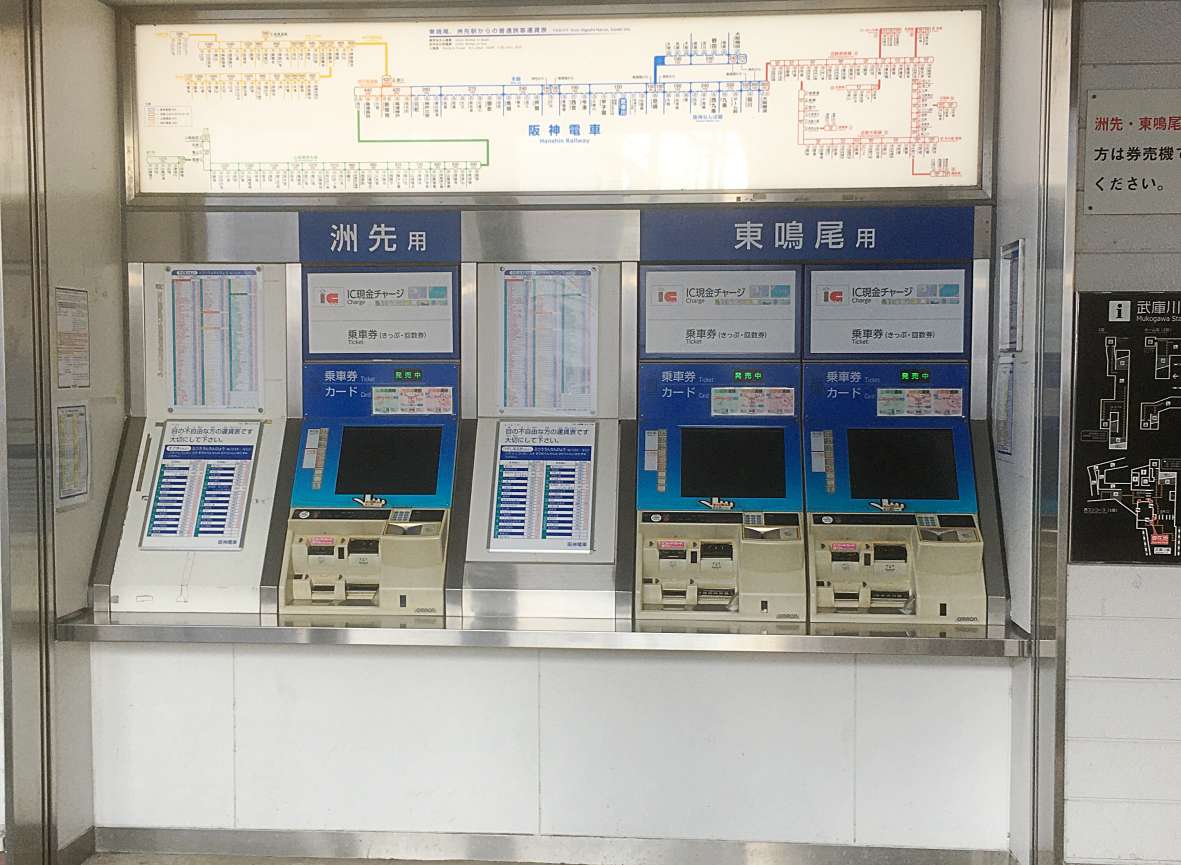 阪神武庫川線武庫川駅ホームの乗車駅別券売機(2021年2月)