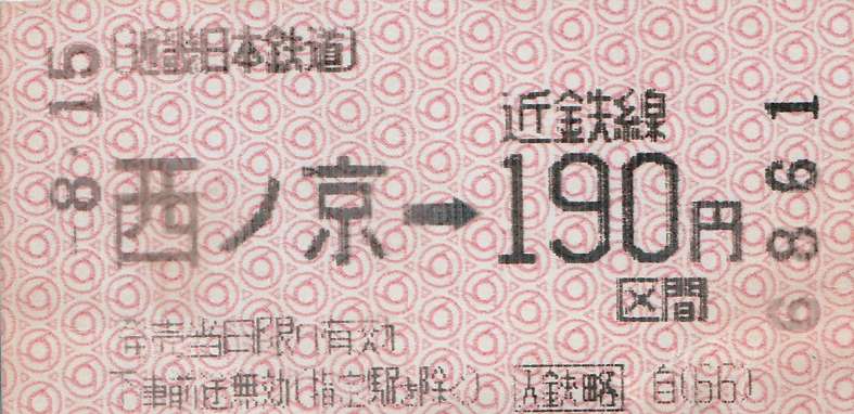 京阪と同じく指定駅途中下車制度があった近畿日本鉄道のきっぷは「途中下車前途無効(指定駅を除く)」と印字され、京阪より少しだけ親切でした。かつての近鉄は900円以上の乗車券は2日間有効かつ途中下車可能、900円未満の乗車券では指定駅(上本町、生駒、大和八木、伊勢中川、橿原神宮前など)でのみ途中下車可能だったのですが、指定駅途中下車制度も2001年1月限りで廃止されました。