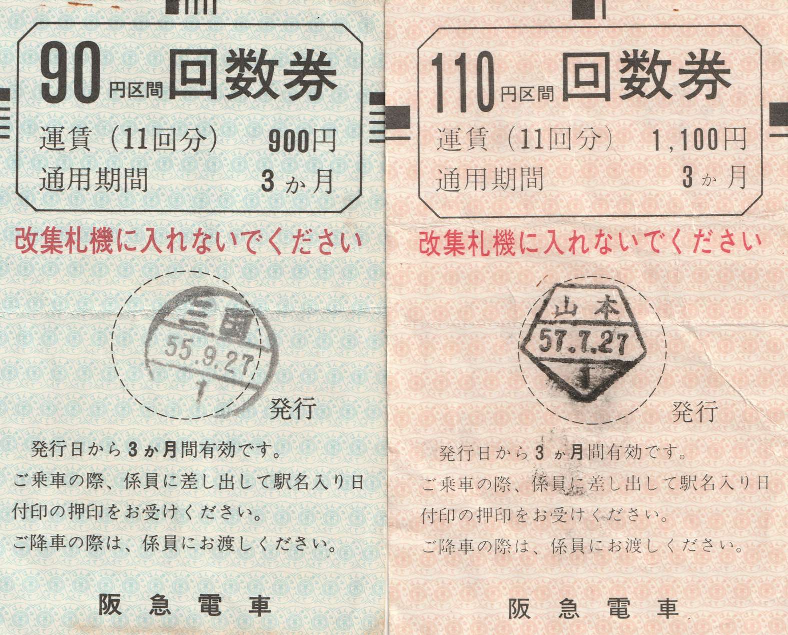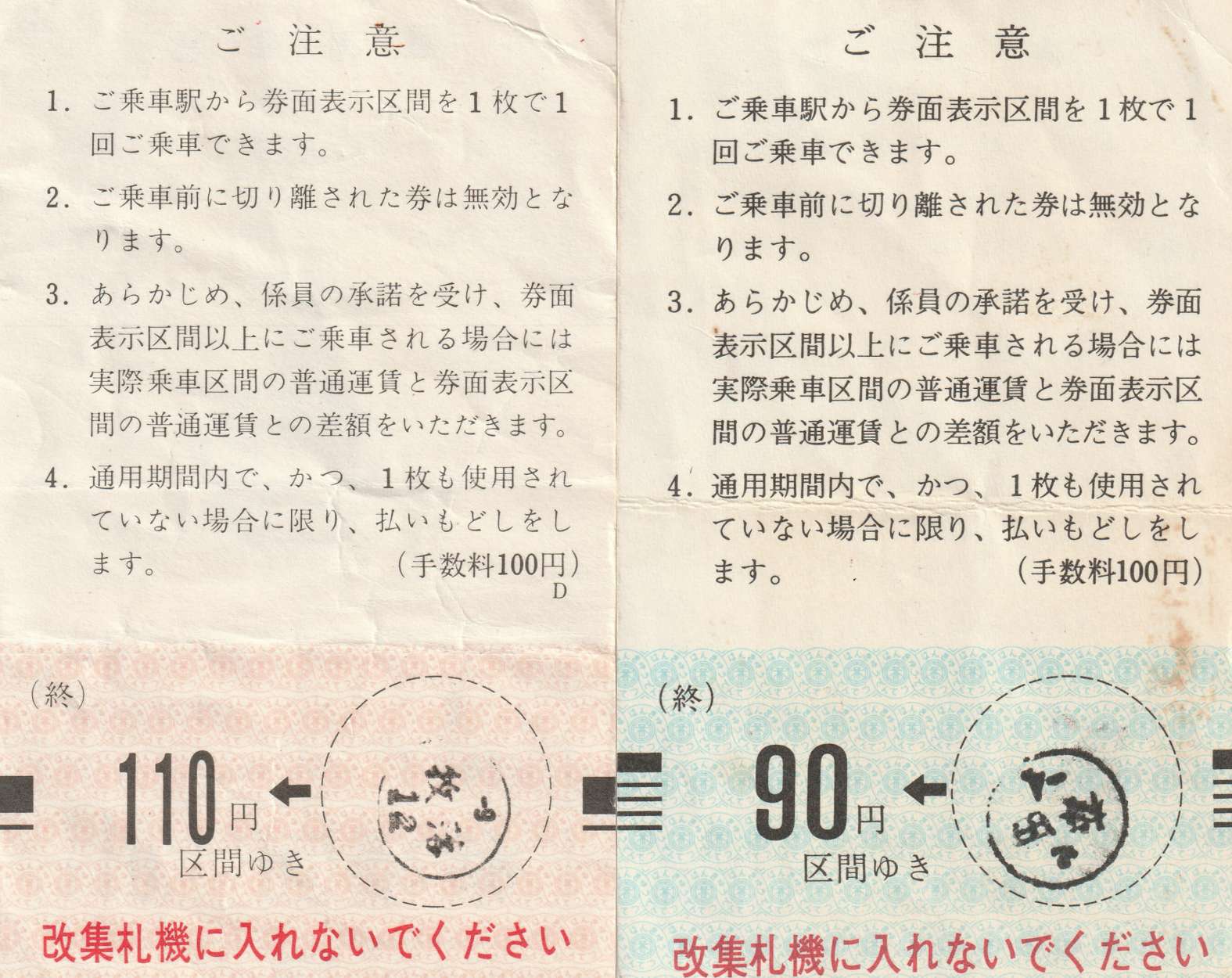 国鉄・JRの回数券は乗車区間を指定して発売され当該区間以外では使えませんでしたが、それ以外の会社では乗車駅から表示運賃分の区間に乗れる金額表示式のところもありました。関西の私鉄は金額表示式の会社が多かったので、逆に国鉄・JRの区間指定回数券が不自由に思えたものです。