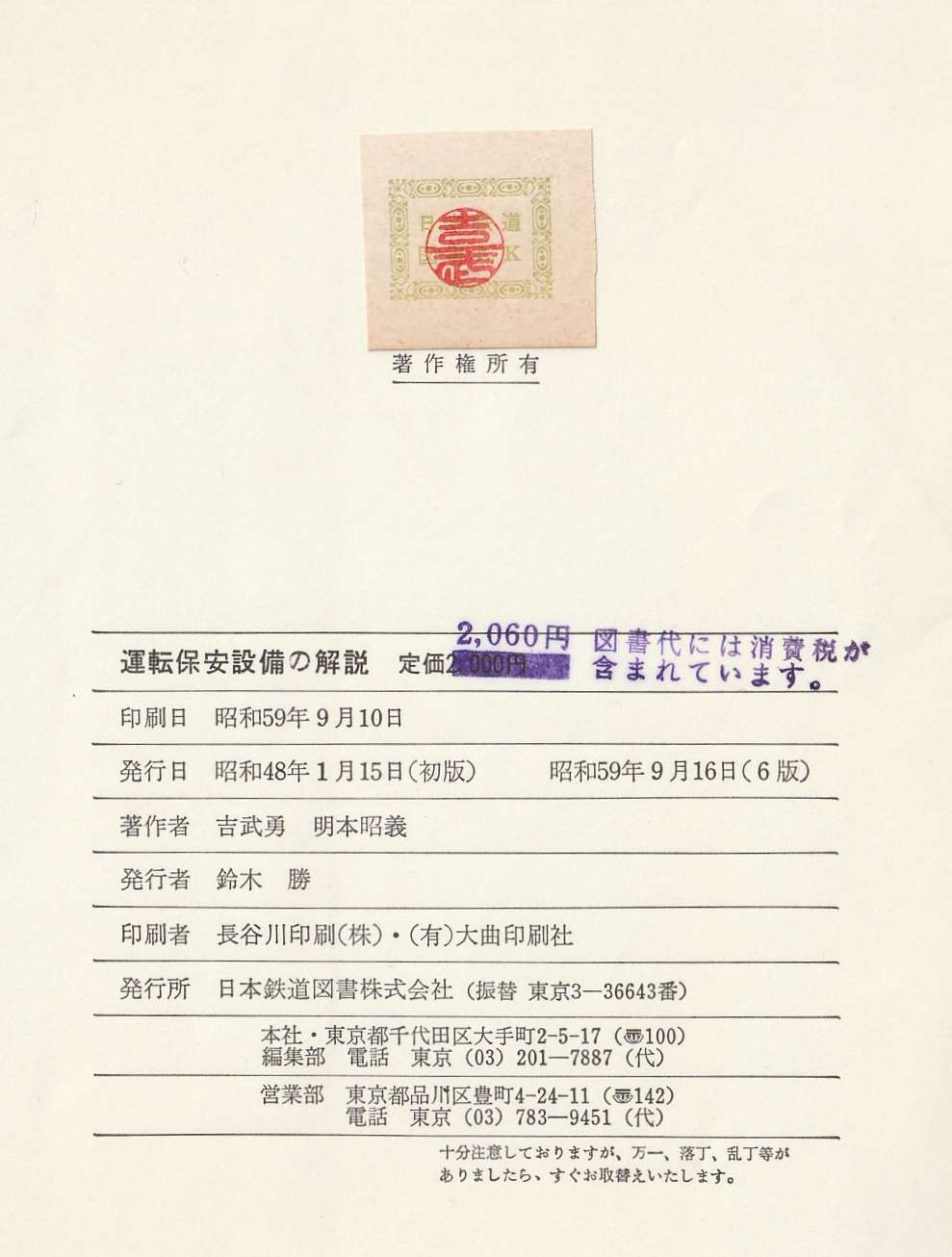 昭和48(1973)年初版の古い本で旧・日本国有鉄道運転局の吉武勇氏と明本昭義氏の共著、そして上席たる鈴木宏運転局長が序文をしたためられています。序文によれば、従来の鉄道設備に関する本は電気工学的アプローチの技術書が多かったため、現場職員にもわかりやすく実務に直結する専門書として発刊したとのことで、乗務員等養成課程でのテキスト的な使われ方をしていたものと推察されます。