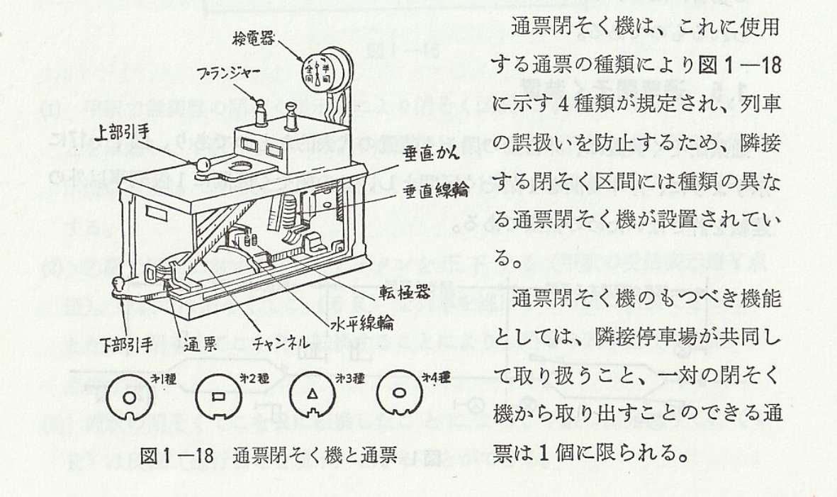 それではまず非自動閉そく方式、その代表格にしてよんかくの大好物である通票(タブレット)閉そく式について、引用しながら見ていきます。