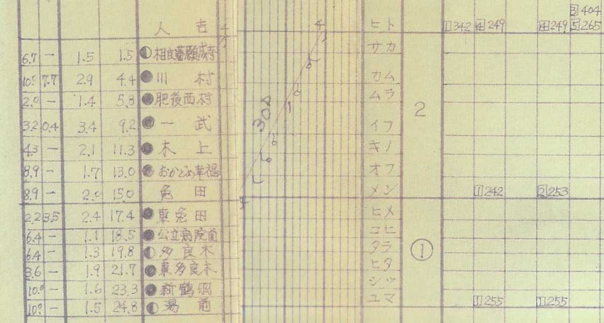 このようにダイヤグラム上では、通票閉そく式の種別は算用数字、スタフ閉そく式は◯囲み数字、そして票券閉そく式は漢数字で表記されていました。